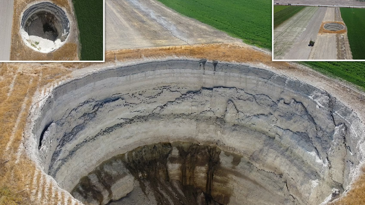 துருக்கியில் வயல்வெளிக்கு அருகேயுள்ள உள்ள மலைப்பகுதியில் திடீரென பள்ளம் ஏற்பட்டது.