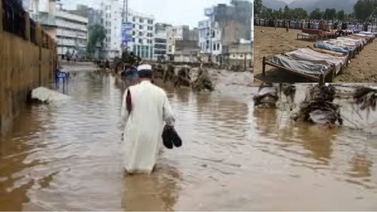 பாகிஸ்தானில் மேக வெடிப்பால் ஏற்பட்ட வெள்ளப்பெருக்கில் சிக்கி இதுவரை 340 பேர் உயிரிழந்துள்ளதாகத் தகவல் வெளியாகியுள்ளது. கூட்டம் கூட்டமாக நடக்கும் இறுதிச் சடங்குகள், மீட்பு ஹெலிகாப்டரின் விபத்து என அசாதாரண சூழலால் ஸ்தம்பித்துள்ள பாகிஸ்தானின் தற்போதைய நிலை குறித்து விவரிக்கிறது இந்த செய்தித் தொகுப்பு