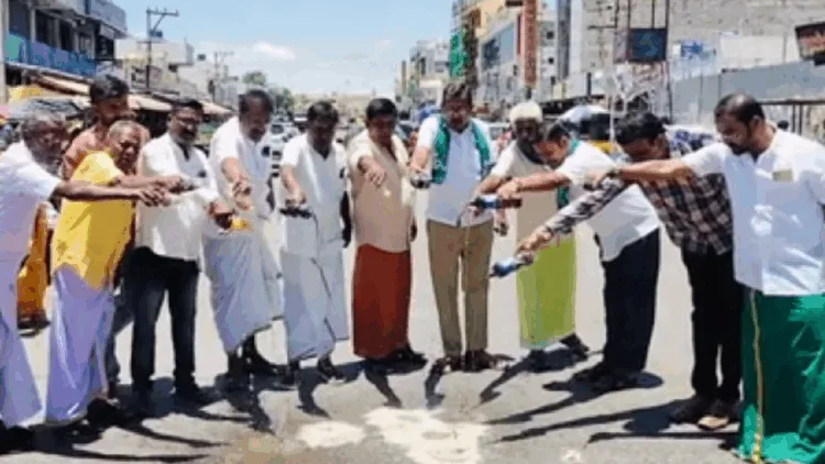 அமெரிக்காவின் கூடுதல் வரி விதிப்பை கண்டித்து திருப்பூர் மாவட்டம் பல்லடத்தில் அந்நாட்டின் குளிர்பானங்களை சாலையில் ஊற்றி விவசாயச் சங்கத்தினர் பேராராட்டத்தில் ஈடுபட்டனர்.