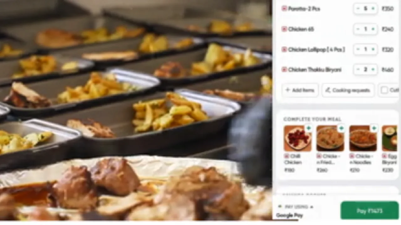 10 பரோட்டாக்கள், சிக்கன் 65, சிக்கன் லாலிபாப்ஸ் மற்றும் சிக்கன் தொக்கு பிரியாணி ஆகிய உணவுகளுக்கு மொத்தம் ஆயிரத்து 473 ரூபாய் கட்டணமாக வசூலிக்கப்பட்டது.