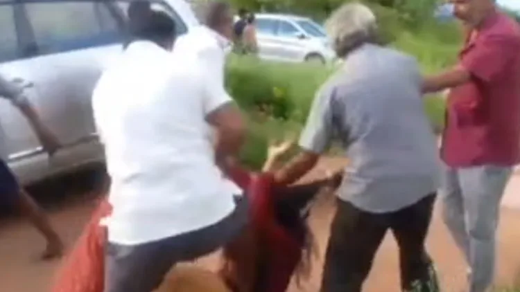 கிருஷ்ணகிரி மாவட்டம் ஓசூர் அருகே கர்நாடக எல்லையில் வரதட்சணை கேட்டுக் கணவர் வீட்டார், பெண்ணை கொடூரமாகத் தாக்கிய காட்சி வெளியாகி உள்ளது.