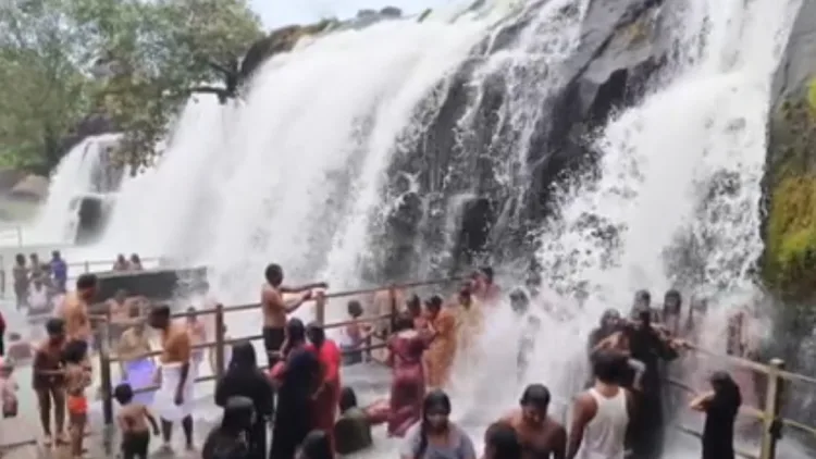 நவராத்திரி தொடர் விடுமுறையை முன்னிட்டு கன்னியாகுமரியில் உள்ள திற்பரப்பு அருவியில் சுற்றுலா பயணிகளின் கூட்டம் அலைமோதியது.