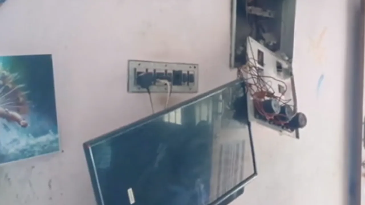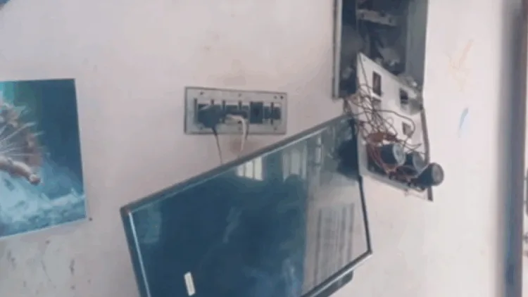 அப்போது வீட்டில் இருந்த மின்விசிறி உள்ளிட்ட அனைத்து மின்சாதனப் பொருட்களும் வெடித்து சிதறியதுடன், நதியாவின் மகன் அகிலன் என்பவருக்குக் காயம் ஏற்பட்டது.