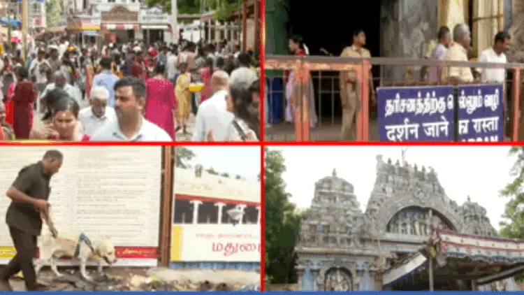 புகழ்பெற்ற மதுரை மீனாட்சியம்மன் கோயிலுக்குப் பல்வேறு மாநிலங்களில் பக்தர்கள் வருகை தரும் நிலையில், கோயிலில் வெடிகுண்டு வைத்திருப்பதாக டிஜிபி அலுவலகத்திற்கு இ-மெயில் மூலம் மிரட்டல் விடுக்கப்பட்டுள்ளது.