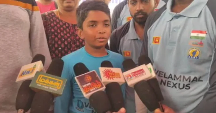 ராமேஸ்வரத்தில் இருந்து படகு மூலம் இலங்கை சென்ற சிறுவன், அதிகாலை அங்கிருந்து தனது நீச்சல் பயணத்தைத் தொடங்கினார். சவால் நிறைந்த கடல் நீரோட்டங்களைத் திறம்பட சமாளித்து, இடைவிடாது நீந்தி சுமார் 30 கிலோ மீட்டர் தூரத்தை 9 மணி நேரம் 11 நிமிடங்களில் வெற்றிகரமாக கடந்து, தனுஷ்கோடியை வந்தடைந்தார்.