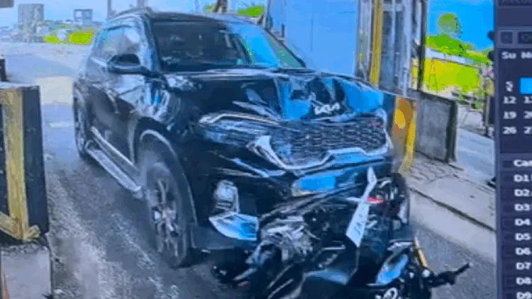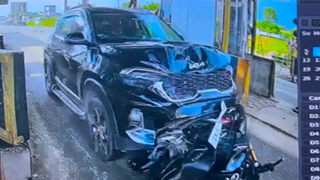 ராணிப்பேட்டை மாவட்டம் வாலாஜா சுங்கச்சாவடி அருகே, அதிவேகமாகச் சென்ற சொகுசு கார், முன்பகுதியில் சிக்கி விபத்திற்குள்ளான இருசக்கர வாகனத்தை ஒரு கிலோ மீட்டர் தூரம் இழுத்துச் சென்றதால் வாகன ஓட்டிகள் அச்சத்திற்குள்ளாகினர்.