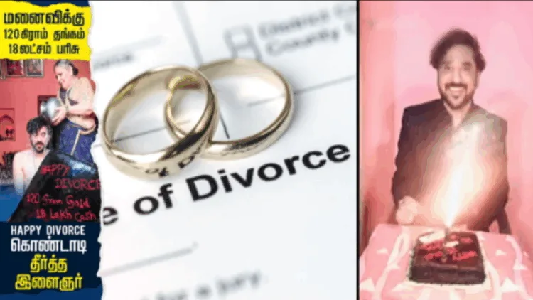 ஒவ்வொரு பிரிவும் சோகமானது என்றும், கண்ணீரில் முடியும் என்றும் யார் சொன்னது? என்று மனைவியை விவாகரத்து பெற்ற மகிழ்ச்சியில் குதூகலிக்கிறார் இந்த இளைஞர். இங்கு ஆணின் விவாகரத்து ஒரு கொண்டாட்டமாக மாறியிருக்கிறது, சடங்குச் சம்பிரதாயம், கேக் வெட்டுதல், விவாகரத்து பெற்ற மனைவிக்கு 18 லட்சம் ரூபாய் மதிப்பிலான பிரியாவிடை பரிசு, 120 கிராம் தங்கம் என வாரி வழங்கத் தயாராகிவிட்டார் இவர்.