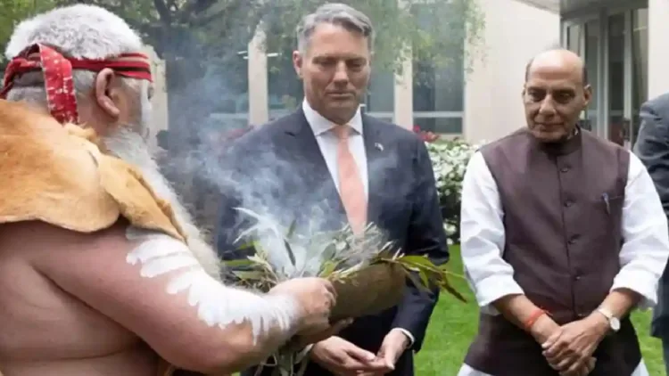பின்னர் ஆஸ்திரேலியாவின் நாடாளுமன்றத்திற்கு சென்ற மத்திய அமைச்சர் ராஜ்நாத் சிங்கை பாரம்பரிய முறைப்படி பழங்குடியின மக்கள் வரவேற்றனர்.