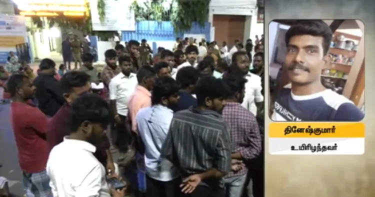 பின்னர், அண்ணாநகர் காவல் நிலையத்துக்கு அழைத்துச் செல்ல முயன்றபோது தினேஷ்குமார் தப்பியோடியதாக கூறப்படுகிறது. போலீசார் துரத்தியபோது அருகே உள்ள உபரிநீர் கால்வாயில் குதித்து தினேஷ்குமார் உயிரிழந்ததாக போலீசார் தரப்பில் கூறுகின்றனர்.