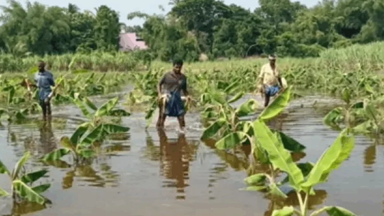 கடந்த ஒரு வாரமாகக் கும்பகோணம் சுற்றுவட்டார பகுதிகளில் கனமழை பெய்து வருகிறது. இதன் காரணமாக அங்குள்ள விளைநிலங்களில் தண்ணீர் தேங்கி பயிர்கள் அழுகும் நிலை ஏற்பட்டுள்ளது.