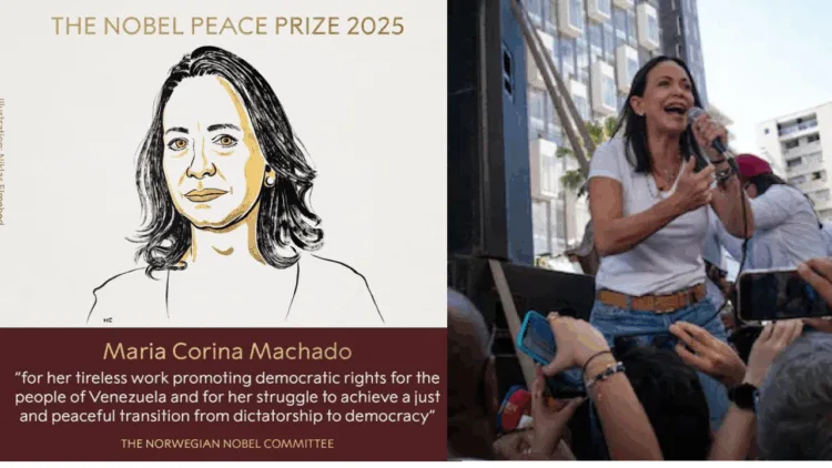 வெனிசுலா மக்களின் ஜனநாயக உரிமைகளுக்காகப் போராடியதற்காக 2025ம் ஆண்டுக்கான அமைதிக்கான நோபல் பரிசை மரியா கொரினா மச்சாடோவுக்கு அறிவித்ததாக நோபல் பரிசு குழுவினர் தெரிவித்துள்ளனர்.
