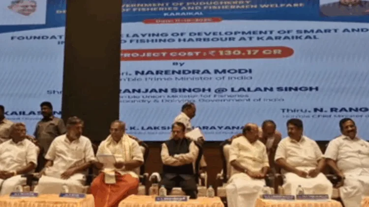 காரைக்கால் மீன்பிடி துறைமுகத்தில் நவீன வசதிகளுடன் கூடிய உட்கட்டமைப்பு விரிவாக்கப் பணிகளை பிரதமர் மோடி காணொலி காட்சி மூலம் அடிக்கல் நாட்டித் தொடங்கி வைத்தார்.