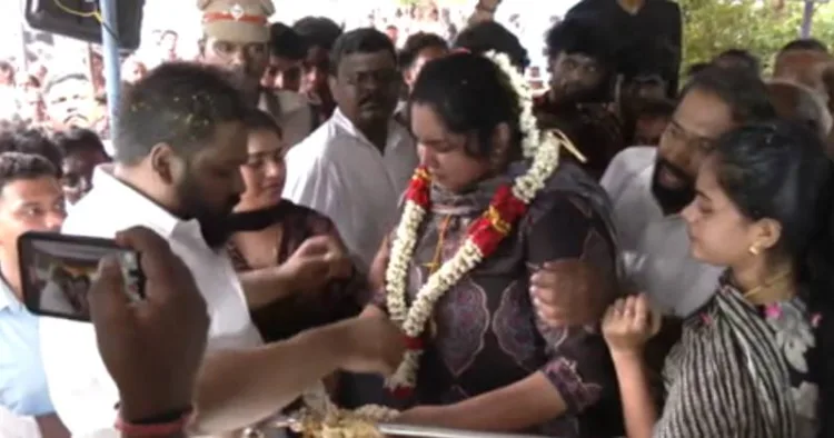 இந்த நிலையில் சிறையில் இருந்த அவரது இளைய மகன் அஜித் குமார், பரோலில் வெளிவந்து தந்தையின் இறுதி சடங்கில் கலந்து கொண்டார். அதே சமயம், தந்தையின் உடலின் முன்பாகவே நிச்சயதார்த்தம் செய்யப்பட்ட பெண்ணுக்கு தாலி கட்டி திருமணம் செய்துகொண்டார்.