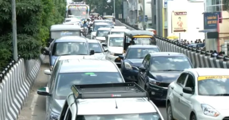 ஐந்து கிலோ மீட்டர் தூரத்துக்கு வாகனங்கள் அணிவகுத்து நின்றதால் பொதுமக்கள் கடும் அவதியடைந்தனர். போக்குவரத்தை சரி செய்யும் பணியில் குறைந்த அளவிலான போலீசாரே ஈடுபட்ட நிலையில், வாகன நெரிசலில் ஆம்புலன்ஸ்களும் சிக்கித் தவித்தன.