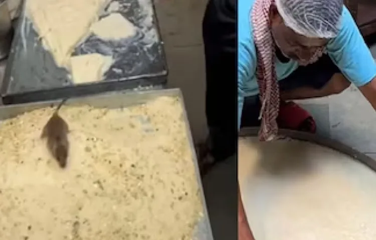 உத்தரபிரதேச மாநிலம் லக்னோவில் உள்ள பேக்கரியில் உணவு பொருட்கள் மீது எலி ஓடிய காட்சி அதிர்ச்சியை ஏற்படுத்தியுள்ளது.
