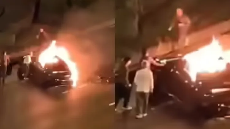 இதில் மின்சாரக் கார் திடீரெனத் தீப்பிடித்து எரிந்தது. அப்போது அங்கிருந்தவர்கள் மின்சாரக் காரை திறக்க எவ்வளவு முயன்றும் முடியாததால் அதில் சிக்கி கொண்ட ஓட்டுநர் உடல் கருகி பரிதாபமாக உயிரிழந்தார்.