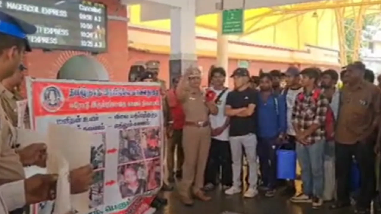 தீபாவளி பண்டிகையை முன்னிட்டு, பயணிகள் பாதுகாப்பாகப் பயணம் மேற்கொள்ள ஈரோட்டில் ரயில்வே காவல்துறையினர் துண்டுபிரசுரங்களை வழங்கி விழிப்புணர்வு ஏற்படுத்தினர்.