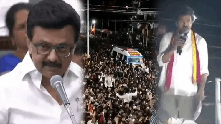 விஜய் தாமதமாக வந்ததால் கரூரில் கூட்ட நெரிசல் ஏற்பட்டதாகச் சட்டப்பேரவையில் முதலமைச்சர் ஸ்டாலின் விளக்கமளித்துள்ளார்.
