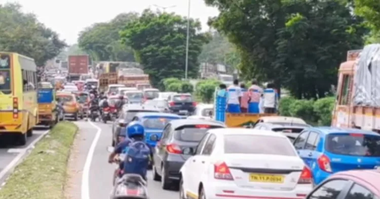 இதன் காரணமாக சென்னையை அடுத்துள்ள சிங்கப்பெருமாள் கோவில், பரனூர் சுங்கச்சாவடி உள்ளிட்ட பகுதிகளில் கடுமையான போக்குவரத்து நெரிசல் ஏற்பட்டது.