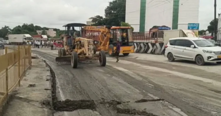 சென்னை, பெங்களூர் தேசிய நெடுஞ்சாலையில் 20 கோடி ரூபாய் மதிப்பீட்டில் மேம்பால கட்டுமான பணி நடைபெற்று வருகிறது. தீபாவளி விடுமுறையை ஒட்டி மக்கள் சொந்த ஊர் செல்வதால் அங்கு கடும் போக்குவரத்து நெரிசல் நிலவியது. இந்நிலையில் பணிகள் முழுமை பெறாதபோதும் போக்குவரத்து நெரிசலால் காவல்துறையினர் மேம்பாலத்தை அவசர அவசரமாக திறந்து வைத்தனர்.