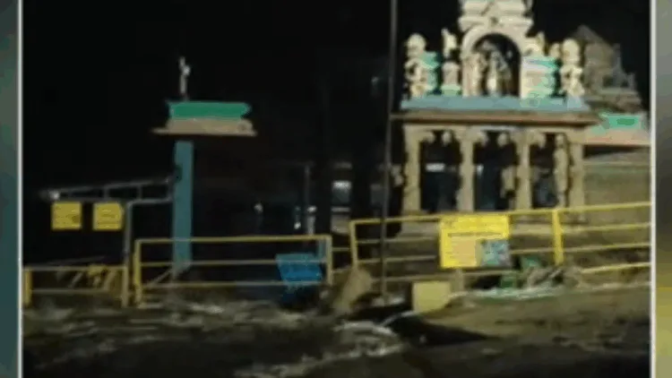 அமணலிங்கேஸ்வரர் கோவிலை சூழ்ந்த படி சென்ற வெள்ள நீர்!