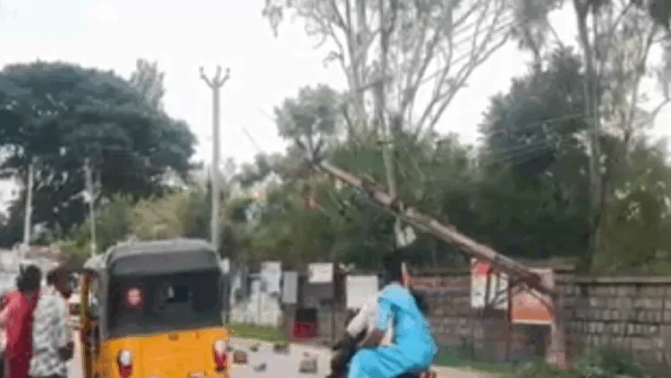 தகவலறிந்து சென்ற மின்வாரி ஊழியர்கள், சாய்ந்த மின்கம்பத்தை அகற்றி புதிய மின்கம்பத்தை நிறுவி உடனடியாக மின்சாரத்தை வழங்கினர்.