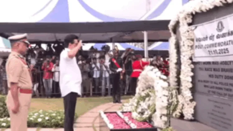 காவலர் வீர வணக்க நாளையொட்டி காவலர் நினைவு சின்னத்திற்கு முதலமைச்சர் ஸ்டாலின் மலர் வளையம் வைத்து மரியாதை செலுத்தினார்.