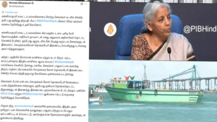 ஆழ்கடலில் சிக்கித் தவிக்கும் கன்னியாகுமரி மீனவர்களுக்குச் செயற்கைக்கோள் தொலைபேசி சேவை மீண்டும் வழங்கப்பட்டுள்ளதாக மத்திய அமைச்சர் நிர்மலா சீதாராமன் தெரிவித்துள்ளார்.