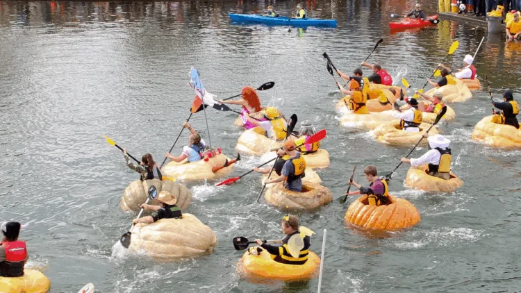அமெரிக்காவின் ஓரேகான் நகரில் ஆண்டுதோறும் பிரம்மாண்ட பூசணிக்காயில் மிதக்கும் படகுப் பந்தயம் நடத்தப்படுகிறது. அந்த வகையில் இந்த ஆண்டுக்கான போட்டியில் ஏராளமானோர் பங்கேற்றனர்.