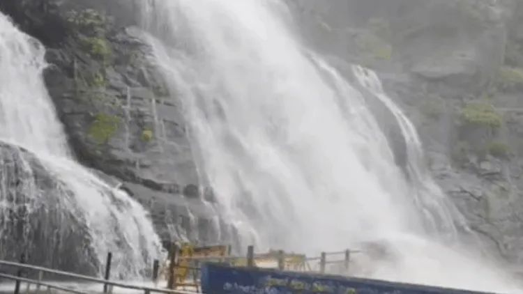 தென்காசி மாவட்டத்தில் உள்ள மேற்கு தொடர்ச்சி மலைப்பகுதிகளில் கனமழை பெய்து வருவதால் குற்றாலத்தில் உள்ள பேரருவி, ஐந்தருவி, பழைய குற்றால உள்ளிட்ட அனைத்து அருவிகளிலும் தடுப்பு கம்பிகளை தாண்டி தண்ணீர் ஆர்ப்பரித்துக் கொட்டுகிறது.