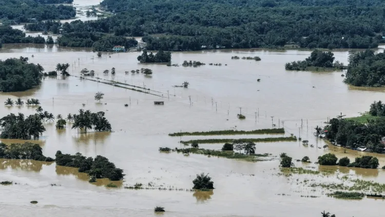 இதனால் பல பகுதிகள் முழுமையாகத் தண்ணீரில் மூழ்கிய நிலையில், ஆயிரக்கணக்கானோர் பாதுகாப்பாக வெளியேற்றப்பட்டு உள்ளதாகத் தெரிவிக்கப்பட்டுள்ளது.