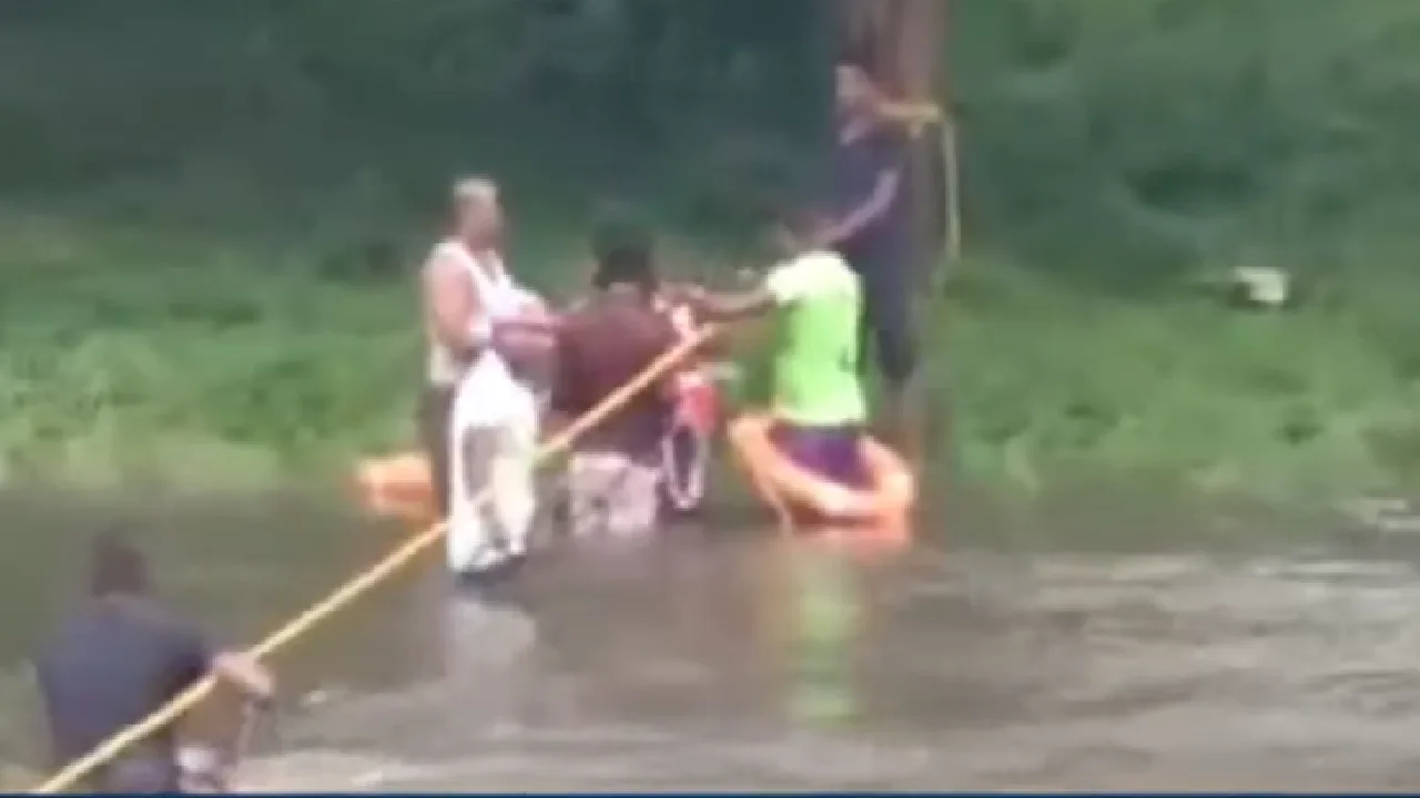 திருப்பத்தூர் மாவட்டம் வாணியம்பாடி அருகே உள்ள பாலாற்றில் வெள்ளப்பெருக்கு ஏற்பட்டுள்ள நிலையில் காட்டுக் கோயிலுக்கு வழிபாட்டுக்காகச் சென்ற பக்தர்களைத் தீயணைப்புத்துறையினர் பத்திரமாக மீட்டனர்.