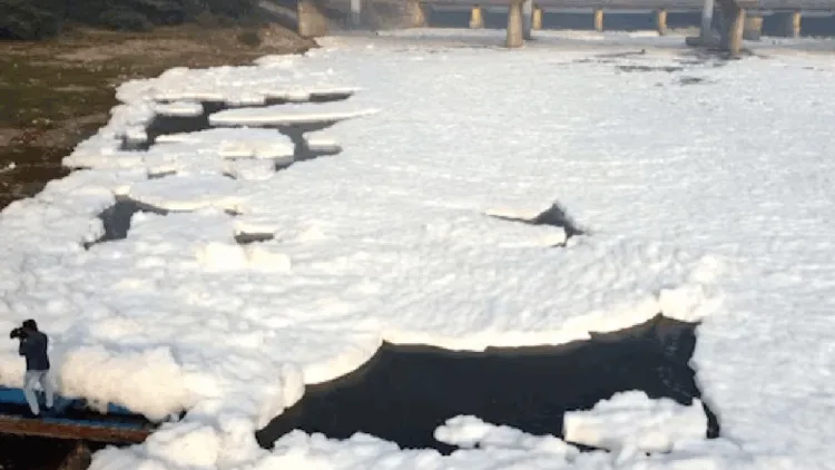 தொழிற்சாலை கழிவுகள் மற்றும் சுத்திகரிக்கப்படாத கழிவுநீர் கலப்பதன் விளைவாக யமுனை நதியில் நச்சு நுரை உருவாகியுள்ளது.