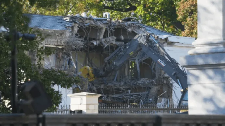 புதிய நடன அரங்கம் அமைப்பதற்காக, வெள்ளை மாளிகையின் கிழக்குப் பகுதியில் உள்ள கட்டடங்கள் இடிக்கும் பணி தொடங்கி நடைபெற்று வருகிறது.
