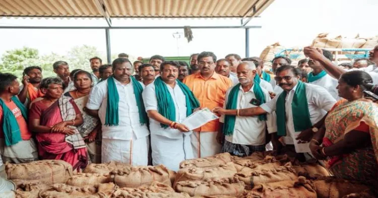 தஞ்சாவூரில் உள்ள நேரடி நெல் கொள்முதல் நிலையத்தில் தமிழக பாஜக மாநில தலைவர் நயினார் நாகேந்திரன் ஆய்வு மேற்கொண்டார்.