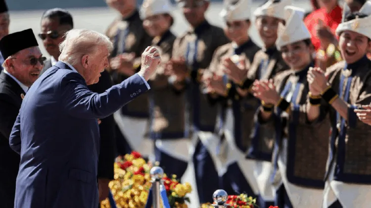 மலேசியாவில் 22வது ஆசியான் உச்சிமாநாட்டில் பங்கேற்க சென்ற அமெரிக்க அதிபர் டிரம்ப்க்கு கோலாலம்பூர் விமான நிலையத்தில் அந்நாட்டின் பாரம்பரிய முறைப்படி உற்சாக வரவேற்பு அளிக்கப்பட்டது.