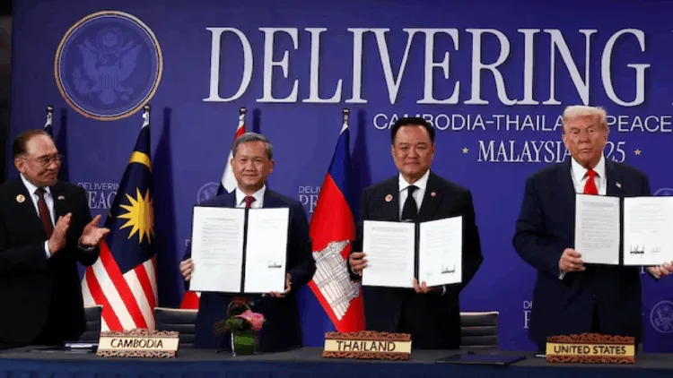 அமெரிக்க அதிபர் டொனால்டு டிரம்ப் முன்னிலையில், தாய்லாந்து – கம்போடியா இடையே போர் நிறுத்த ஒப்பந்தம் கையெழுத்தானது.