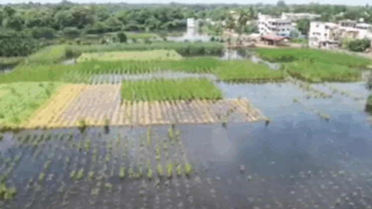 தஞ்சை மாவட்டம் கும்பகோணத்தில் சுமார் 50 ஏக்கர் பரப்பளவிலான விவசாய நிலங்கள், மழைநீரில் மூழ்கிய கழுகு பார்வை காட்சி வெளியாகி உள்ளது.