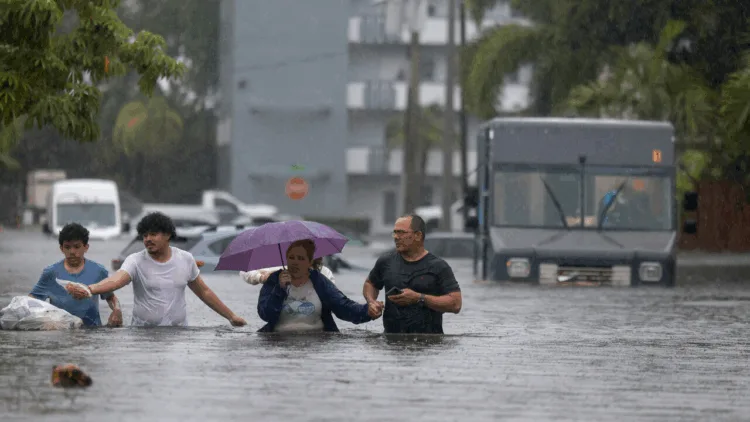 கனமழை காரணமாக அமெரிக்காவின் புளோரிடா மாகாணம் வெள்ளத்தில் தத்தளிக்கிறது. குறிப்பாக யூஸ்டிஸ், போகா ரேட்டன் உள்ளிட்ட நகரங்கள் திரும்பும் திசையெல்லாவெள்ளக்காடாகக் காட்சியளிக்கின்றன.
