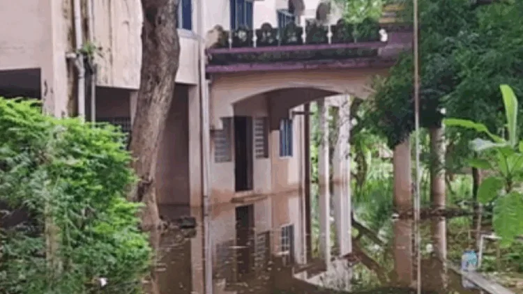 இந்த நிலையில், கடந்த சில நாட்களாகப் பெய்துவரும் கனமழையின் காரணமாக ஏரி நிரம்பி நீதிமன்ற வளாகத்தை வெள்ளம் சூழ்ந்தது.