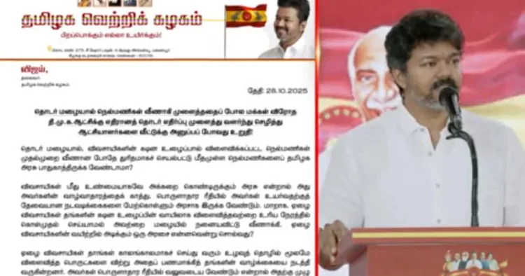 விவசாயிகளின் கடின உழைப்பால் விளைவிக்கப்பட்ட நெல் மணிகளை பாதுகாக்க திமுக அரசு தவறிவிட்டதாக தவெக தலைவர் விஜய் குற்றம்சாட்டி உள்ளார்.