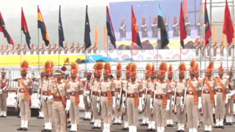 குஜராத்தில் மத்திய பாதுகாப்பு படையினரின் அணிவகுப்பு ஒத்திகை!