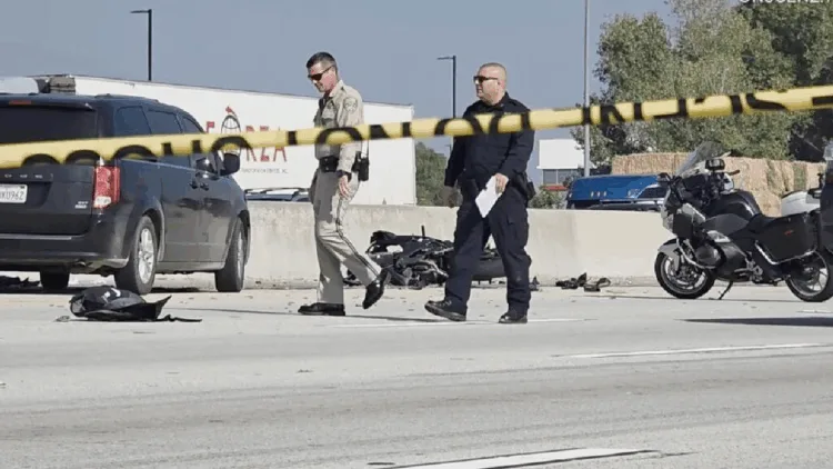 அமெரிக்காவில் காவலரைச் சுட்டுக் கொன்று விட்டு இருசக்கர வாகனத்தில் தப்பிக்க முயன்ற நபரை விடாமல் துரத்திச் சென்ற போலீசார் விபத்தில் சிக்கியவரை கைது செய்த வீடியோ வெளியாகியுள்ளது.