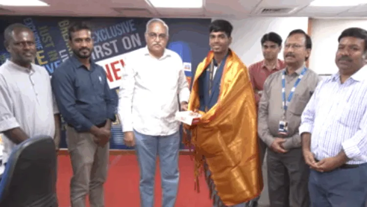 அவருக்குத் தமிழ் ஜனம் சார்பில் உற்சாக வரவேற்பு அளிக்கப்பட்டு, பொன்னாடை போர்த்தி கௌரவிக்கப்பட்டது. தொடர்ச்சியாகத் தமிழ் ஜனம் தொலைக்காட்சி ஊழியர்களும், தங்க மகன் அபினேசுக்கு தங்களின் வாழ்த்துக்களைத் தெரிவித்தனர்.