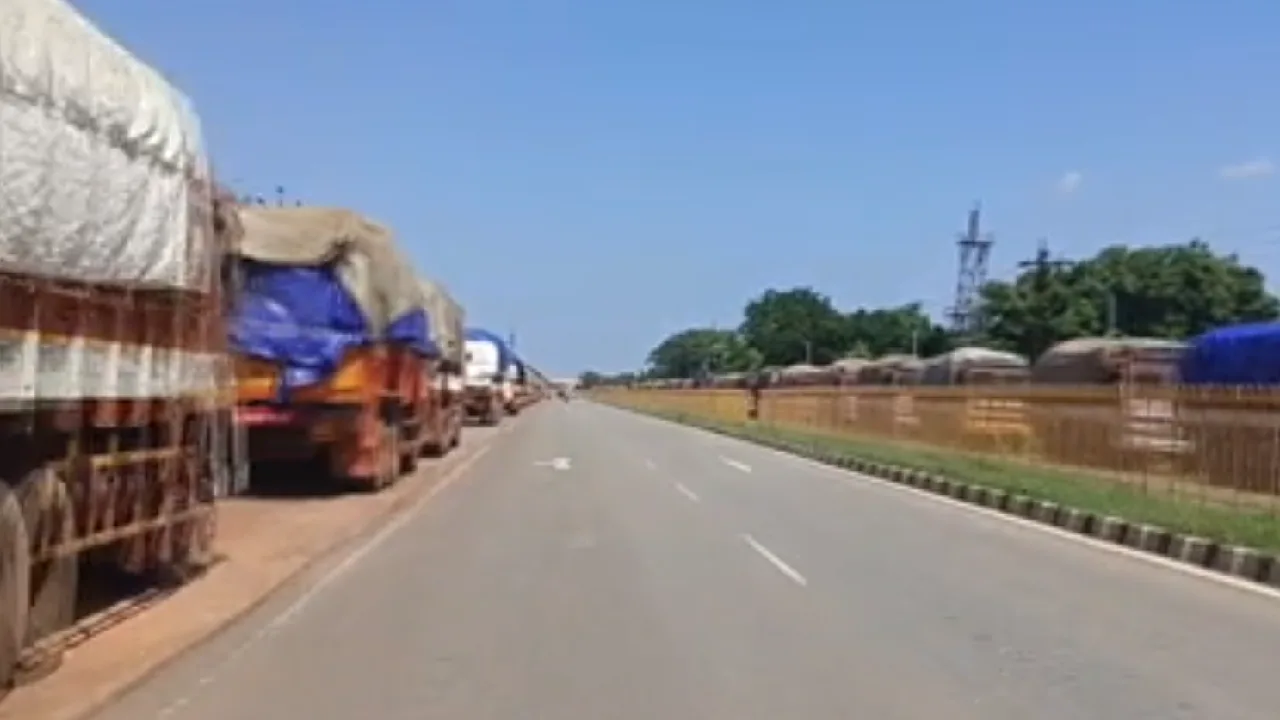 தஞ்சாவூர் மாவட்டத்தில் தொழிலாளர்கள் பற்றாக்குறையால் சேமிப்பு கிடங்களுக்கு கொண்டு செல்லப்பட்ட நெல் மூட்டைகள் 5 நாட்களாக லாரிகளில் வைத்திருக்கும் அவலம் ஏற்பட்டுள்ளது.