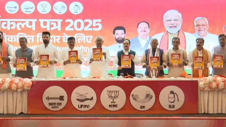 பீகாரில் அடுத்த மாதம் 2 கட்டங்களாகத் தேர்தல் நடைபெறவுள்ள நிலையில், NDA தேர்தல் அறிக்கையைப் பீகார் முதலமைச்சர் நிதிஷ்குமார், பாஜக தேசிய தலைவர் ஜெ.பி.நட்டா உள்ளிட்டோர் கூட்டாக வெளியிட்டனர்.