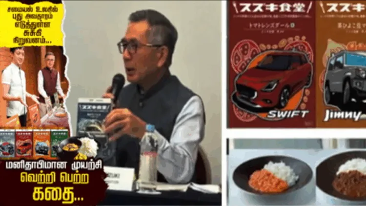 அதற்காகச் சுசுகி நிறுவனம் 150 ஆண்டுகள் பாரம்பரியம் உள்ள ‘டோரிசென்’ என்ற ஜப்பானிய உணவகத்துடன் கூட்டணி அமைத்தது. பல்வேறு இந்திய சைவ குழம்பு வகைகளை உருவாக்கிய இந்தக் கூட்டணி, பல மாத உணவு பரிசோதனைகளையும் நடத்தியது.