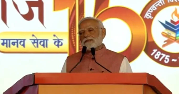 சமூக சீர்த்திருத்தங்களை முன்னெடுத்ததுடன், சுதந்திர போராட்டத்தில் ஈடுபட பல்வேறு தியாகிகளுக்கும் ஆர்ய சமாஜம் அமைப்பு ஊக்கமளித்ததாக கூறிய பிரதமர் மோடி, இந்தியாவுக்கு எதிரான சித்தாந்தங்களை ஆர்ய சமாஜம் எதிர்த்து வந்துள்ளதாகவும் தெரிவித்தார்.