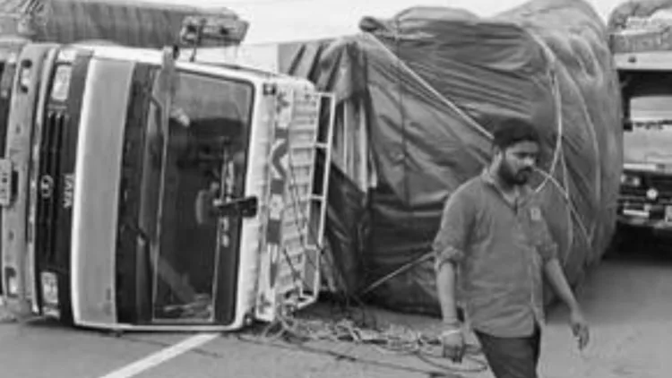 அதிவேகமாகச் சென்ற மினி லாரி திடீரென ஓட்டுநரின் கட்டுப்பாட்டை இழந்து சாலையோரம் கவிழ்ந்து விபத்துக்குள்ளானது.