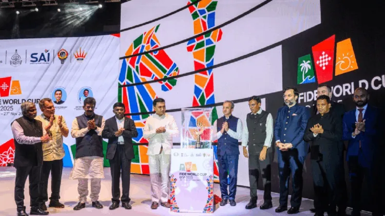 FIDE செஸ் உலகக் கோப்பை தொடரானது கோவாவில் உள்ள டாக்டர் ஷ்யாமா பிரசாத் முகர்ஜி மைதானத்தில் கோலாகலமாகத் தொடங்கியது.